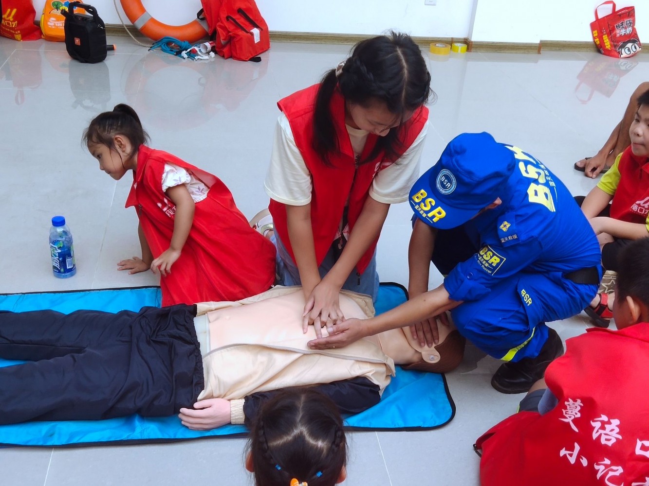 鉴于少年儿童的行为特殊性,在今天的公益活动中,志愿者们着重以“预防为主”为主题开展,针对:防溺水、防火防拐骗、海姆立克急救法、紧急报警做了详细的宣讲。从青少年儿童的视角,切实有效地把保护自身,快速远离危险这一信息传达到每个在场孩子的认知当中。