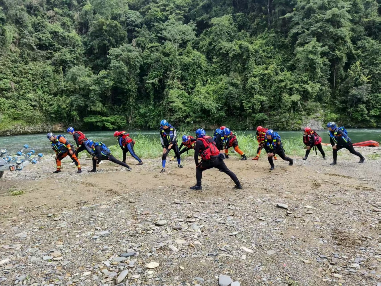 为切实提升队员水域救援专业技能,强化复杂激流环境下的应急处置能力,2025年8月22日至24日,桂林市蓝天救援服务中心在龙胜组织开展激流水域专项训练。8月22日14:00,全体参训队员在临桂实训基地集合,统一前往训练地点,正式开启高强度训练。