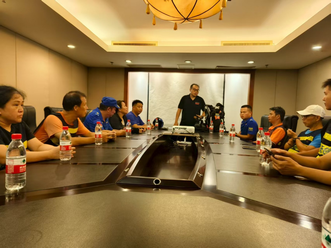 队员抵达训练点后,迅速分工协作搭建帐篷,高效完成营地建设,为后续高强度训练筑牢后勤保障。当晚饭后,训练转入理论学习阶段:系统开展水域救援理论授课,内容涵盖水域救援基本知识、专业装备介绍;结合真实激流救援视频,深入剖析救援过程中的常见错误,同步传授实用救援技巧,帮助队员夯实理论基础;课后总结当日任务,明确次日训练方向,确保训练目标清晰。