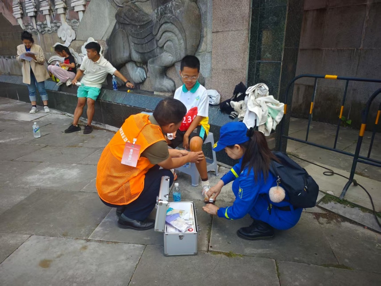 赛事期间,全体保障队员坚守岗位、履职尽责,携带急救箱、除颤仪等专业设备,凭借丰富的急救经验和严谨的工作态度,实时巡查赛道状况,密切关注参赛学生的身体反应,随时准备应对扭伤、擦伤等突发情况。从隐患排查到应急待命,从状态监测到安全守护,队员们用专业行动为赛事筑起全方位安全屏障,确保赛事在安全、有序的氛围中圆满完成。